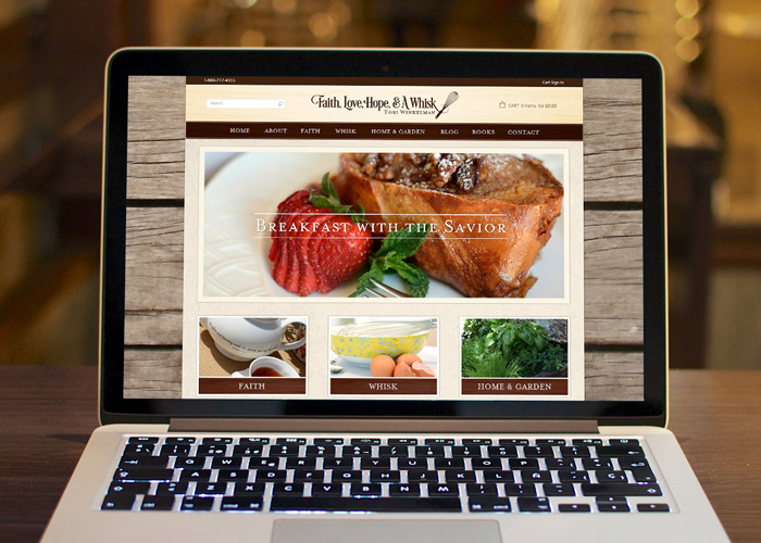 Custom e-commerce website and brand identity for the distribution of her new cook book called, “Faith, Love, Hope & a Whisk”.
